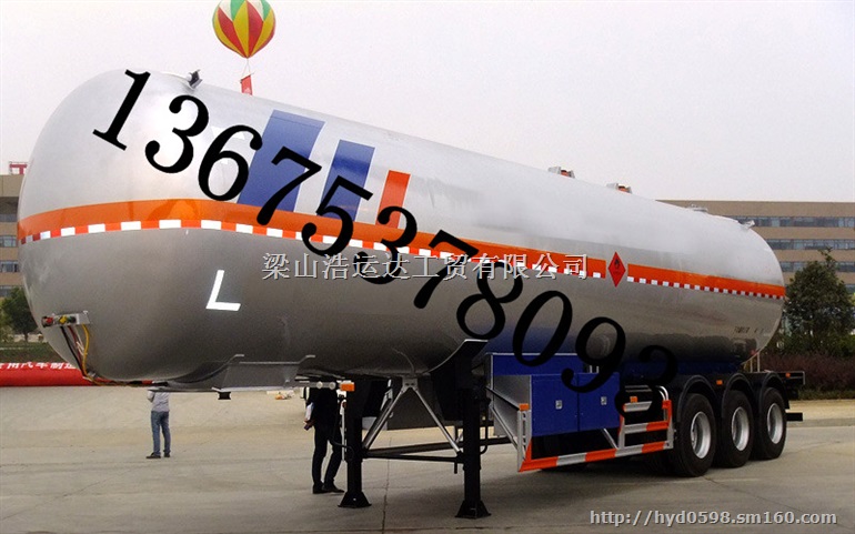 液化气半挂运输车(二甲醚):罐体有效容积:47.58立方米罐体为圆形,采用优质Q345R高强度加强钢,安全高效。质量轻强度大,适合于海路、公路、铁路的中转运输.