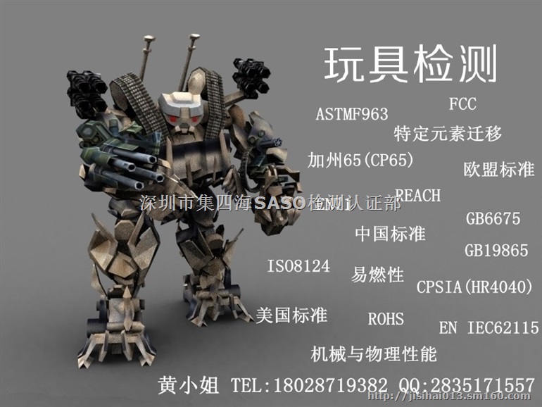 欧盟:玩具安全标准(EN71)、电动玩具的安全标准(EN62115)、电磁兼容(EMC)、REACH法规、ROHS环保
