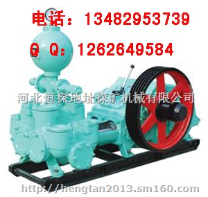 泵头具有三个彼此隔开的水缸,三缸有共同的吸水室和排水室。吸水室两侧腰形法兰,一端装进水管接头以此连接吸水软管和滤水器,另一端用进水管端盖堵死。排水室两侧腰形法兰,一端装空气室及三通水阀、软管接头(排水软管为2寸两层钢丝高压胶管),分别与钻机水龙头及回水管接通,另一端装安全阀,进水管接头及三通安装位置可以根据现场布置调换180度在泵的左侧或右侧。
