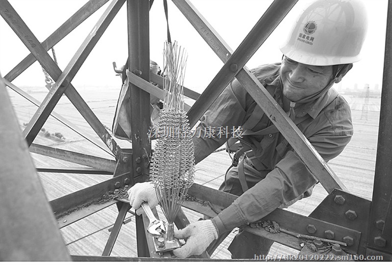 我国电力事业近年来得到长足发展,架空输电线路越来越密集,担负着输送电力的任务,具有点多、面广、线长、裸露野外等特点,经常遭受冰雨等恶劣天气的侵蚀以及鸟类活动的威胁,往往造成线路跳闸、重大停电事故的发生。特力康科技旋转倾倒式防鸟刺(驱鸟刺)主要安装在高压输电铁塔、电线杆和变电站上,由25根镀锌冷拔钢丝构成,安装完毕呈散状态,随风飘动,防止鸟类在高压输电铁塔、电线杆以及变电站上筑巢、栖息、打闹等活动,以免对输电线路安全运行构成危害,减少因停电造成的经济损失。