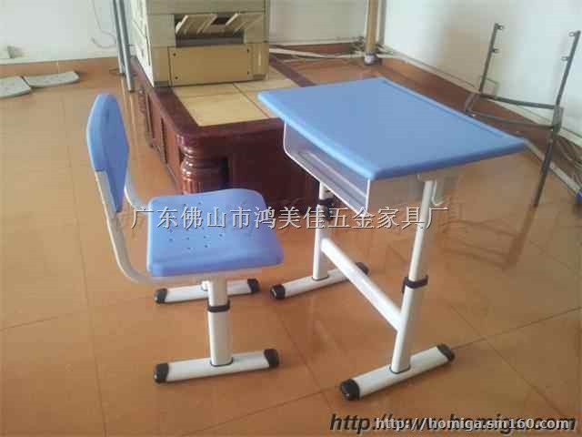 塑钢课桌椅产品简介:1. 桌椅脚架: 冷轧钢管,表面经打磨抛光, 再经去油/除锈/酸洗/磷化, 经高温烘干后再静电喷涂, 并高温烘干处理(黑色或银灰色),表面防锈、耐磨、抗刮划. 2. 座椅、靠背:增强型PP中空(聚丙烯)工程塑料,具有抗老化、抗氧化,耐冲击,安全无毒害之特点;3. 桌面:塑胶板桌面采用增强型PP(聚丙烯)工程塑料