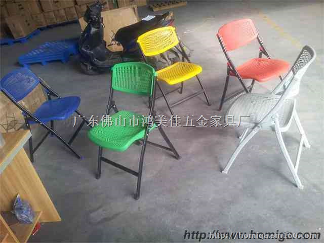折叠椅,轻便、可叠放功能的座椅,既方便搬动,又节省空间。座面板与背面板采用原生PP塑料通过模具在注塑机内一次低温注塑成型;椅架与椅脚用静电银色粉末喷塑的椭圆形低碳A3冷轧钢钢管,具有牢固耐用及不易生锈等特点;椅架底部,即与地面接触的位置加装防滑脚垫,起到防滑,防止划伤地板的作用。