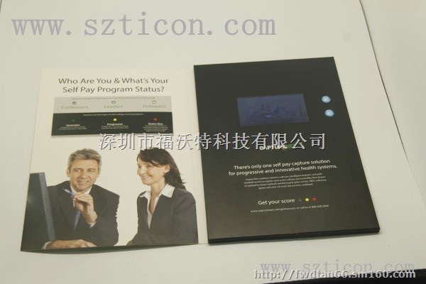 产品结构:电子显示屏等电子元器件内置在印刷纸卡里。打开纸卡,可见显示屏窗口,视频内容自动播放。