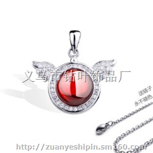 韩版正品石榴石 镶锆石天使翅膀时尚项链吊坠 七夕情人节礼物 带链子批发Q011-1-359