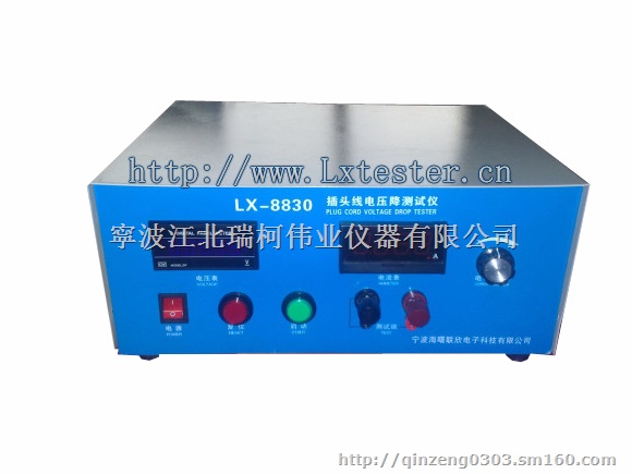LX-9830插头电压降测试仪适用范围:该仪器适用于测量不可重接插头插销与连接插头引出线等类似接线口的电压降,从而判断接线口优劣,也可检查插头线在完成标准规定的弯曲试验次数后的断线情况。该仪器同时适用于测量开关触点、继电器、开关、线材线束、压接线端子、连接器等相关产品之压降测试本仪器有可调的大电流输出,微电压测试,数码管显示。,本仪器有交流和直流两种款型(选购),满足不同测试要求,直流恒流源输出,电路设计合理,操作方便.同时可以选购辅助测试治具. 满足标准:QC/T 730-2005 ;ISO 6722:2002 GB/T 2951—1997; GB/T 3048—1994 QC/T29106-2004;QC/T413-2002 ;QC/T413-2002;同时满足德国、法国、韩国、日本、等国家标准要求和测试规范,电压降实验按QC/T29106-2004标准5.7进行实验 QC/T29106-2004标准:5.7端子与电线压接处的电压降实验按图2所示,在端子与电线压接处中间位置致电线75mm长的电线处(剥去绝缘层钎焊牢固)的两点间测量,扣除75mm长的电线电压降后即为端子与电线压接处的电压降。当一个端子同时连接两根或两根以上电线时对个根电线分别施加电流以测量电压降.