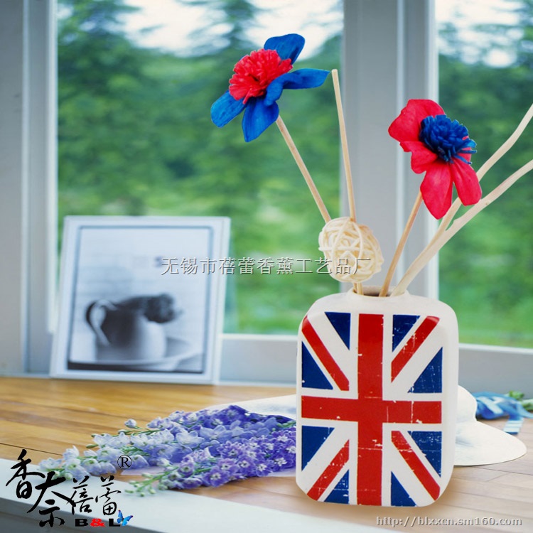| | 蓓蕾香薰 | 品名:复古国旗自然挥发香薰座 | 型号:ZX22 | 材质:陶瓷瓶+天然植物藤条 | 包装尺寸:12.2*4.6*27cm 产品尺寸:瓶高10cm,宽7cm 整体高度 25.6cm | 自带精油容量:30ml | 包装:纸盒+透明胶盖 | 重量:300g | 颜色:图片色 | 挥发时间:45天左右(自带挥发精油 的挥发时间,建议搭配补充液一起购 买。)