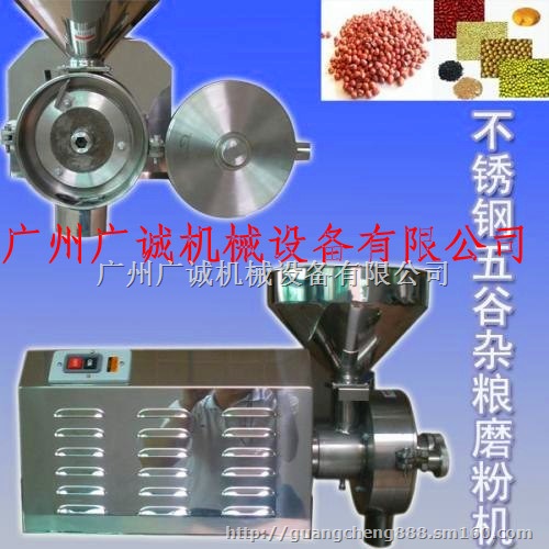 广州广诚机械设备有限公司专业生产不锈钢五谷杂粮磨粉机特点:能将各种粮食、中药材研磨成50~200目的均匀粉末。该磨粉机靠两块布满齿槽的磨盘对磨运转从而将物料磨成粉末。该机属连续投料式作业,结构简单大方,噪音小,容易操作,粉碎细腻,无粉尘,适用于超市和商场专柜、加工店现场加工各种五谷杂粮和中药材使用。