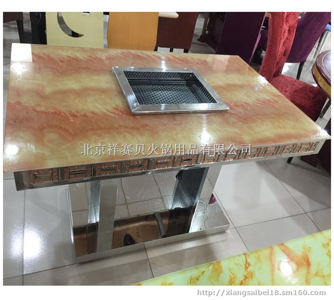 电烧烤炉专用烧烤桌钢化玻璃火锅桌 产品参数品名不锈钢烧烤桌型号规格/单价 1.2x0.8m /968元 材质说明防大理石钢化玻璃面,全不锈钢架子产品特点整体架子采用不锈钢精心制作,先进抛光技术,光泽度优, 牢固性非常好注意事项避免干烧,糊底售后服务六个月(因糊底或干烧炸裂的不在保修范围)保修方式如果是产品自身质量问题,公司负责发新的进行补偿!不管春夏秋冬安全与卫生都是餐饮界的致命点!为了让烧烤不再是夏季专利,更卫生,餐厅环境更时尚,更适合于各个季节,我厂设计了一款四季型高档时尚的钢化玻璃烧烤桌!桌面使用10mm仿大理石钢化玻璃,有多款颜色可选!让烧烤也变的更时尚更新潮! 本款烧烤桌摒弃了以往传统观念,用钢化玻璃及不锈钢组合出完美的效果!高端,大气,上档次!餐饮酒店必备烧烤桌!不管您开的是什么样档次的烧烤店,它都适合您哦! 本厂所有桌子的款式都是可以做成烧烤桌或者火锅桌的,亲们尽管挑自己喜欢的款式吧! 全国免费热线:400-6020328欢迎广大新老客户莅临选购!北京销售总部:联系人:赵丽媛 联系电话:13683351977 地址:北京市丰台区高立庄601号(花乡桥往南3公里第二个加油站对面)山东分公司: 联系人:刘艳媚 联系电话:0532-85657355 15863014008 地址:山东青岛市李沧区通真宫路139号 沈阳分公司:联系人:李泷 联系电话:13352482463 024-31063847 地址:沈阳于洪区长江北大街松山南区12-12楼1单元1楼2号