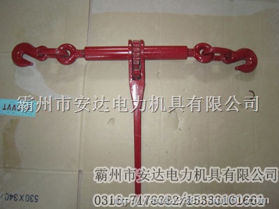 霸州市安达电力机具有限公司是生产链条捆绑器 张力收紧器,联系电话:0316-7178382 15333161661 紧线器是是在架空线路敷设施工中作为拉紧导线用的。紧线器类别有:多功能紧线器,紧线器自带卡头,手扳紧线器,棘轮收紧器,双钩紧线器,套筒式双钩紧线器,虎头紧线器,曲齿紧线器,铁线紧线器,双钩紧线器,,三角紧线器,钢丝绳紧线器,棘轮紧索具,杠杆式紧线器,无钩环棘轮紧索具以及日式夹线器。链条捆绑器 张力收紧器规格如下: