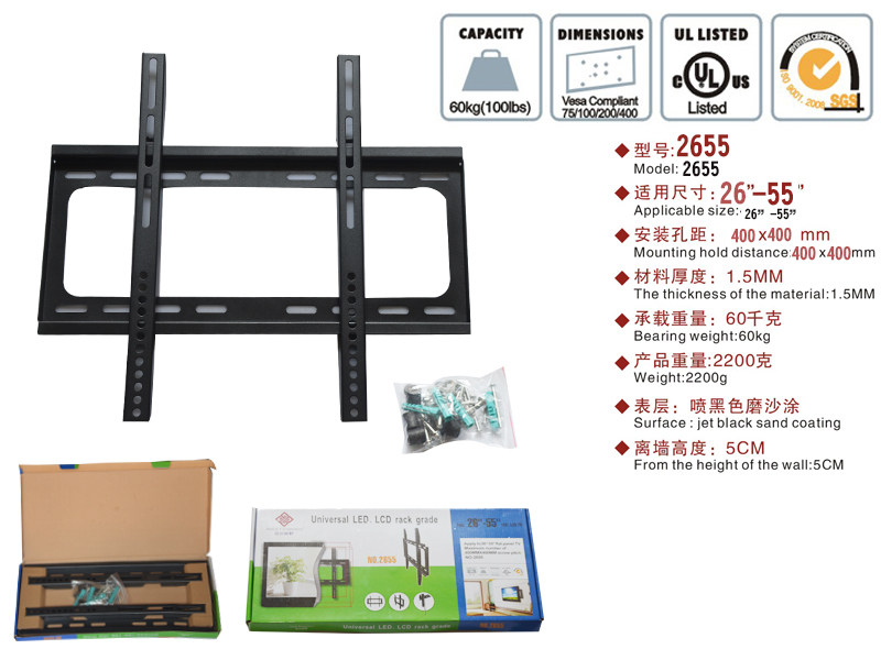 一体成型壁挂式平板电视支架是适用于LCD,LED和液晶显示屏的挂栽支持。适合在家庭和商务等各种场所使用。它易于安装特性,SPCC高强度钢板冲压结构与流线型的外观设计相结合,既节约空间又美观,展示给您最佳的视觉效果。
