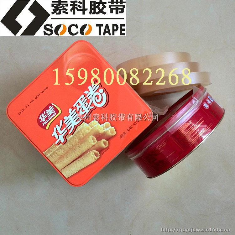 供应巧克力盒封口密封胶带威化饼干铁盒封口胶带生产厂
