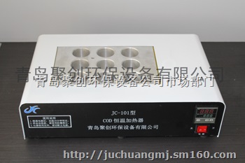 ?JC-101型COD恒温加热器(COD消解仪)是经典方法分析污水中一种采用空气冷凝代替水冷凝测定化学耗氧量的加热回流装置,它采用新型温控器,升温速度快,温度恒定均匀,操作方便,是一种实验手段仪器化新产产品。经国家环保局环境监测仪器质量监督检验中心测试表明,结果符合国际标准方法ISO06066-86的要求。采用数字化设定、显示加热温度,自动控制加热温度,可设定加热时间。升温速度快,温度恒定均匀,耗电小,操作简单,性能稳定可靠,广泛用于环保、医疗、卫生、食品、自来水、造纸、污水处理、印染、石化、冶金、院校等行业的水质检测。?为满足更多用户需求,至2014年9月18日起JC-101型COD恒温加热器全面升级,推出9孔和12孔两种标准配置。