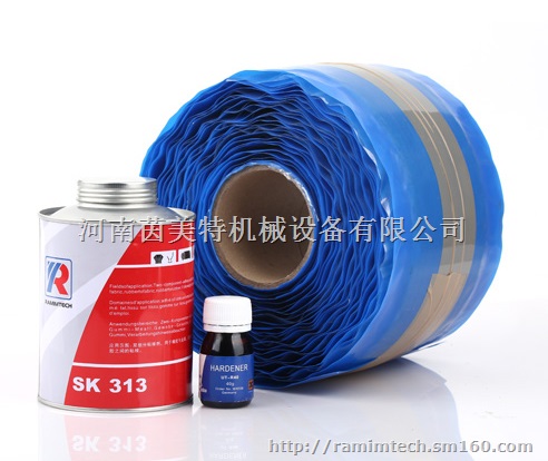 茵美特输送带修补条是德国进口带蓝色半硫化层修补条。修补条可与冷硫化粘接剂SK313发生硫化反应,融为一体后具备超过德国DIN工业标准的耐磨性、拉伸强度与耐腐蚀性。