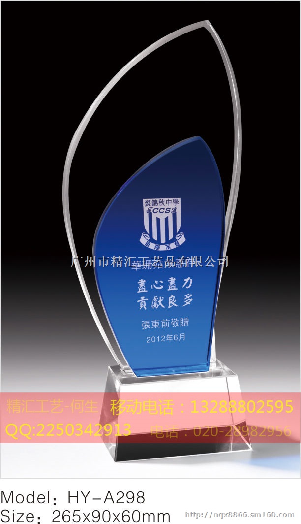 深圳水晶奖杯厂家,深圳企业优秀员工水晶奖杯