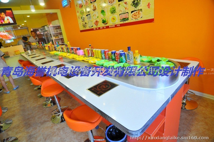 1、模式新颖:采用回转机械输送菜品,品种多样,顾客不必再东奔西跑,仅此一项就足以引吸顾客眼球。