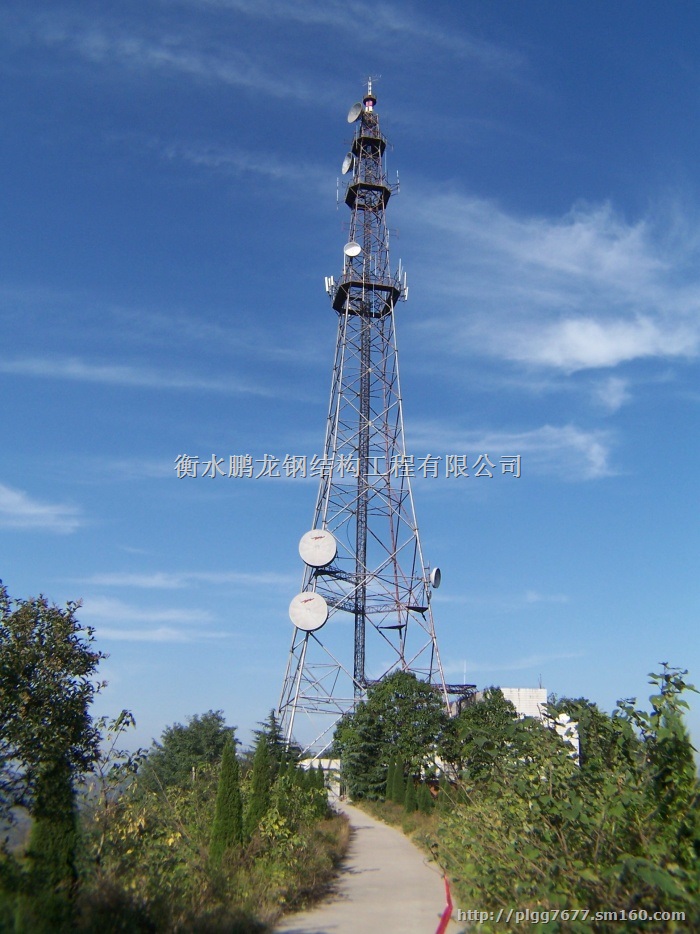 生产工艺:通讯塔由塔体、平台、避雷针、爬梯、天线支撑等钢构件组成,并经热镀锌防腐处理,主要用于微波、超短波、无线网络信号的传输与发射等。为了保证无线通信系统的正常运行,一般把通讯天线安置到最高点以增加服务半径,以达到理想的通讯效果。而通讯天线必须有通讯塔来增加高度,所以通讯铁塔在通讯网络系统中起了重要作用.本公司生产的国标通讯铁塔系列产品多年来受到移动,联通,电信,公安部队等部门的一致好评和赞美。