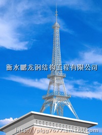 楼顶钢结构造型是一种集钢结构造型与楼顶装饰塔为一体,具有多种功能的钢结构产品。通常可在本产品上加配以避雷针、航空障碍灯,具有美化环境、景观照明等功能于一身。我公司可以为了满足用户对楼顶建筑的特殊要求我们可提供特别的钢结构造型设计。