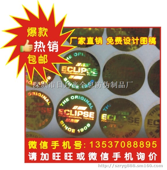 供应镭射加密防伪标。经营范围:温变防伪,镭射易碎纸,激光加密防伪印刷, 水印纤维丝防伪纸,激光防伪商标,电码防伪商标,高难度防伪商标,800电码防伪商标,镭射防伪商标,全息防伪商标,揭开留字防伪商标,数码防伪商标,塑面3D防伪商标,3D立体防伪印刷,证券证书防伪印刷,防伪标签印刷,数码吊牌防伪印刷,安全线及微雕防伪印刷,凹凸防伪印刷,纹理凹版防伪印刷,三维立体防伪印刷,特种防伪印刷,防伪奖券票券印刷,优惠券、代金券、现金券、礼品券、抵用券、邮票防伪印刷,隐形防伪印刷,编码防伪印刷,有色条形码防伪印刷,变色条形码防伪印刷,隐形条形码防伪印刷,可变数据防伪印刷,3D光栅印刷,纤维纸防伪印刷,穿织安全线防伪,物理生化防伪印刷,门票隐形防伪印刷,专用防伪演唱会门票印刷,全息对位烫印防伪,特种防伪印刷,卷状纹理加烫印防伪标签印刷,综合防伪标签印刷,不干胶防伪印刷,镂空防伪标签,防揭防伪标签,核径迹防伪标签,不易破坏防伪标签,激光防伪标签,激光烫印防伪标贴,全息烫印防伪标签,全息烫布标签,盘标卷状全息防伪标签,流水号防窜货防伪标贴,产品防伪标签,一次性防伪标签,核孔防伪标签,各类服装防伪吊卡,防伪吊牌,各类刮刮防伪卡,银行防伪卡烫印,PVC烫印精美卡,游戏卡,礼品卡、防伪商标