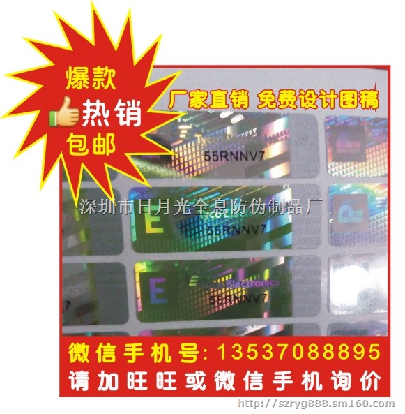 供应镭射加密防伪标。经营范围:加密防伪印刷,多技术防伪印刷,东莞防伪标贴,800电码防伪商标,镭射防伪商标,全息防伪商标,揭开留字防伪商标,数码防伪商标,塑面3D防伪商标,3D立体防伪印刷,证券证书防伪印刷,防伪标签印刷,数码吊牌防伪印刷,安全线及微雕防伪印刷,凹凸防伪印刷,纹理凹版防伪印刷,三维立体防伪印刷,特种防伪印刷,防伪奖券票券印刷,优惠券、代金券、现金券、礼品券、抵用券、邮票防伪印刷,隐形防伪印刷,编码防伪印刷,有色条形码防伪印刷,变色条形码防伪印刷,隐形条形码防伪印刷,可变数据防伪印刷,3D光栅印刷,纤维纸防伪印刷,穿织安全线防伪,物理生化防伪印刷,门票隐形防伪印刷,专用防伪演唱会门票印刷,全息对位烫印防伪,特种防伪印刷,卷状纹理加烫印防伪标签印刷,综合防伪标签印刷,不干胶防伪印刷,镂空防伪标签,防揭防伪标签,核径迹防伪标签,不易破坏防伪标签,激光防伪标签,激光烫印防伪标贴,全息烫印防伪标签,全息烫布标签,盘标卷状全息防伪标签,流水号防窜货防伪标贴,产品防伪标签,一次性防伪标签,核孔防伪标签,各类服装防伪吊卡,防伪吊牌,各类刮刮防伪卡,银行防伪卡烫印,PVC烫印精美卡,游戏卡,礼品卡、防伪商标