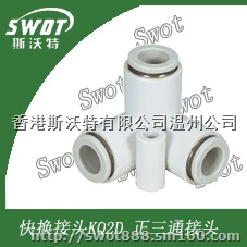 温州斯沃特气动有限公司是专业SMC型KQ2D正三通SMC型接头的生产厂家。公司生产的接头塑料件部分全采用正料生产,铜件部分都经过精加工处理,全比例仿制,是SMC接头的理想替代品。公司致力中高端接头厂品的开发和生产,力求发展国内气动行业,欢迎广大用户和厂商来电洽谈业务。1) KQ2D正三通SMC型接头选型参数