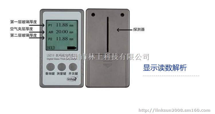 LS210数码玻璃厚度仪利用光学反射原理,可在玻璃的单侧表面测量玻璃厚度,尤其适用于通用测量工具(如刻度尺或游标卡尺等)不能或不易操作的测量场合,如建筑夹层玻璃(中空玻璃)厚度的测量。对于空气夹层玻璃的测量,还可以同时获得两层玻璃及中间空气层的厚度。仪器采用CCD探测,液晶显示,操作简单,测量快速可靠。专利产品,专利号:201220327620.2。