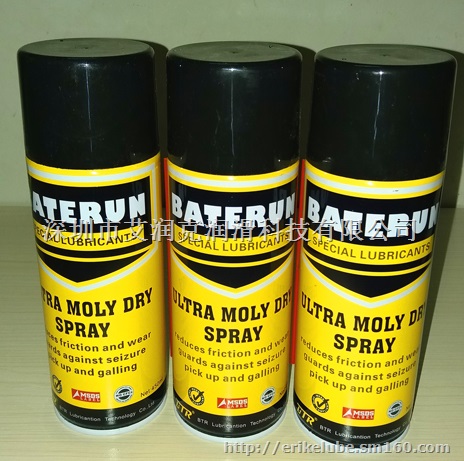 ULTRAMOLY DRY SPRAY 是倍特润公司精心研制,特种快干式二硫化钼润滑喷雾罐,含高质量润滑油与细微二硫化钼以及多种高度优化添加剂组合配方,能耐超高温与低温环境,雾化效果极好,快干,能于喷洒处迅速形成强韧干式润滑保护膜,粘附性强,具高抗磨、防锈与抗腐蚀性能,能保护机器设备动件与静止件,还能提供紧急润滑效能。