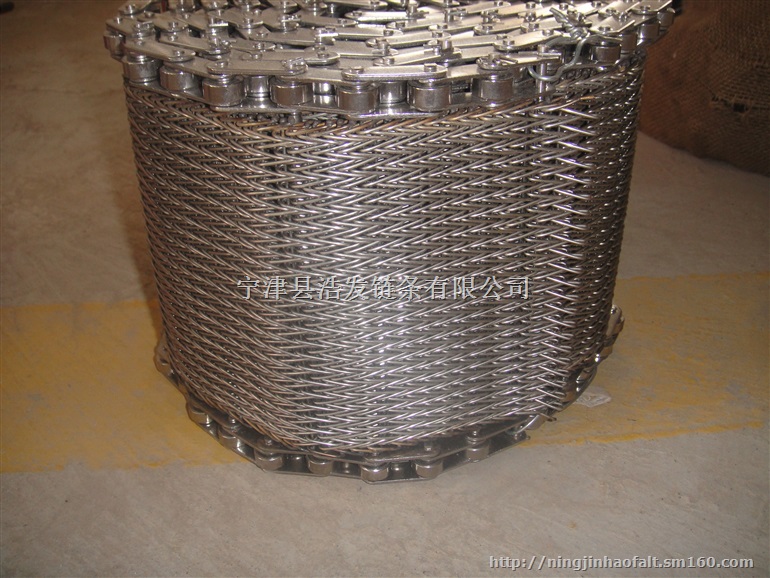 网链由输送网带俩侧加装链条及横向支撑杆而成,链轮传动,网带宽度固定不变形,维修方便