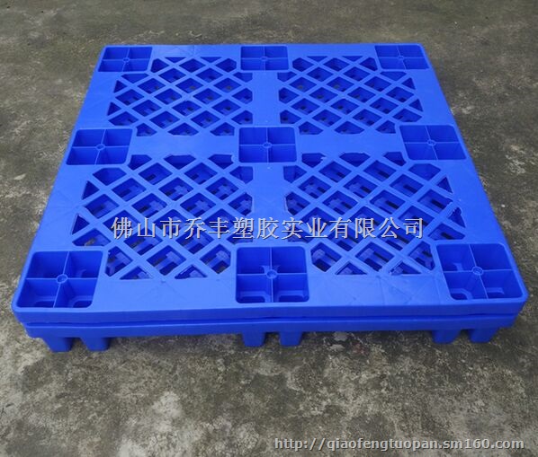 塑料托盘又叫塑料卡板,塑料垫板,塑料地台板,塑料叉车板,塑料拖板,塑料托架,塑料垫仓板,塑料防潮板。主要材质为高密度聚乙烯(HDPE),其颜色多为蓝色,具有好看又经济,耐用,抗冲击,耐磨损,防腐蚀,防蛀,防滑,防潮等优点。生产工艺为一次注塑成型,外形美观,没有毛边,日产量大。现在很多企业都有用到,大大节省了人力,财力。乔丰塑胶的塑料托盘均为全新聚乙烯材质,主要规格有九脚托盘:1200*1000*140 1200*800*142 1000*1000*140 1100*900*150 川字托盘 1200*1000*170 1300*1100*170 平面托盘 1200*1000*135田字托盘 1200*1000*150 1100*1100*150 1200*1200*150 全国各地都可供应。广州乔丰塑料托盘具有良好的耐热性和耐寒性,化学稳定性好、有较高的刚性和韧性。机械强度好。按用途可分为出口塑料托盘,联运塑料托盘,防潮塑料垫板,防潮塑料托盘,叉车塑料托盘,货架塑料托盘,物流塑料托盘,食品塑料托盘,啤酒塑料托盘,饮料塑料托盘,化工塑料托盘,烟草塑料托盘,机械塑料托盘,13531432351电子塑料托盘,盐业塑料托盘,堆码塑料托盘,联运标准塑料托盘,港口塑料托盘,集装箱塑料托盘等。