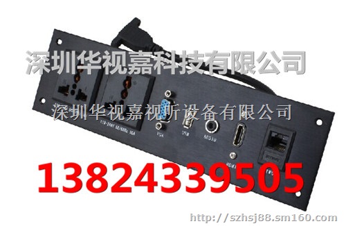 华视嘉出品的HSJ-Q系列墙面多媒体信息插座是一种可连接iPod、MP3、DVD机、网络、电脑、话筒、VGA、电话、PlayStation、Xbox、手提电脑、数码相机以及数码摄像机的集线器。多用于酒店宾馆房间,办公家具、会议中心、满足旅客携带的多媒体产品数据连接使用。它是一种多产品连接线的集合体。房间装置上这个产品,可以令用户可以充分利用房间、办公场所设施。该产品为用户提供了一个高品质、美观、高档、实用、易用的墙面信号连接解决方案。产品采用了简单易用的连接方式,用户使用时无须断开任何现有的电缆连接,只要简单插上插头即可完成连接,避免了昂贵的电缆改装费用,亦避免连接器或插头受损。本系列墙面多媒体信息插座产品可提供视频、音频、网络、电源、VGA、USB、HDMI、3.5Audio、麦克风等接口,致力为用户提供一个一流方便的互联网、电源及多媒体数据连接设备。
