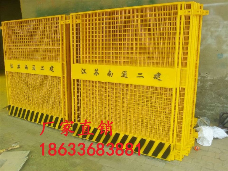 电梯防护门 室内电梯井道门 电梯楼层防护门 隔离网用于电梯井道的防护作用,防止发生意外事故!防护门用 料:四周扁铁固定,中间两道坚梁,菱形网片覆盖,底下有警示线,更加醒目,中间 有警示牌上可跟据客户要求喷提示语,此款简单、大方、安全,警示效果更好!