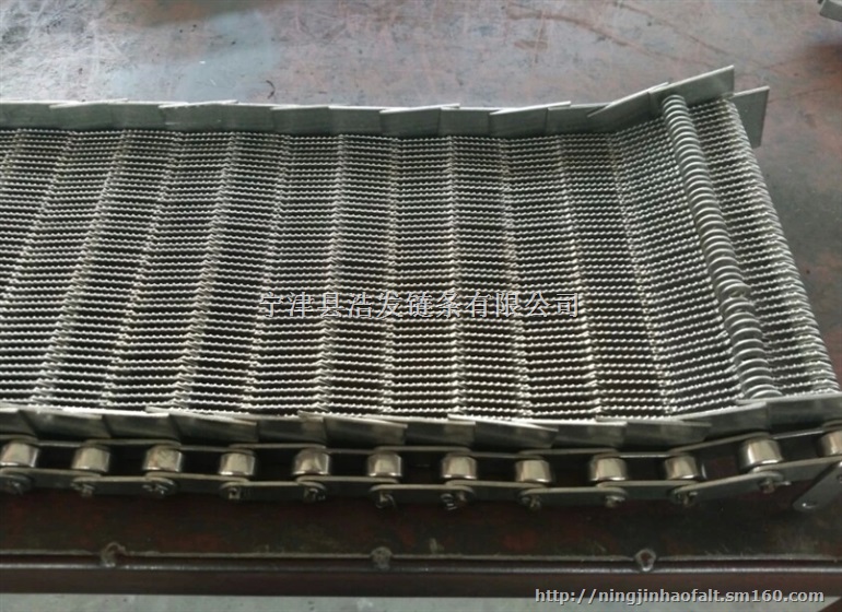 眼镜网带是由不锈钢片和弹簧串在规格的轴上,再将链条镶上,使之形成眼镜网带,该网带耐高温、耐腐蚀、使用寿命长,输送过程中运转平稳