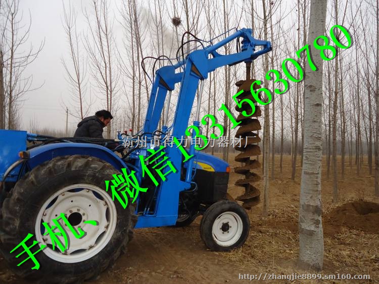 拖拉机电线杆挖坑机 拖拉机线杆钻孔机钻眼机由四轮拖拉机,机架,传动轴,万向节,减速机组成特殊设计的钻具组成.适合在土地,冻土,冰层上打孔.广泛用于园林,种植,植树,物探,道路建设等领域.配置钻杆采用刀片焊接加强了挖坑效果,出土率达到90%。配备定心钻头。