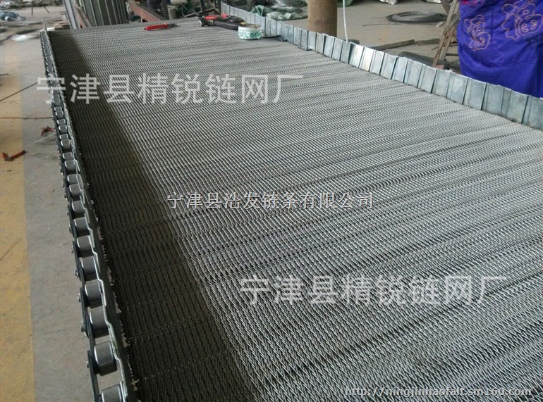 人字网带采用不锈钢丝加工而成,该网带网孔较密,适合输送较小物料,如小米、绿豆等,输送过程中运转平稳,使用寿命长,俩侧挡板可防止物体滑落