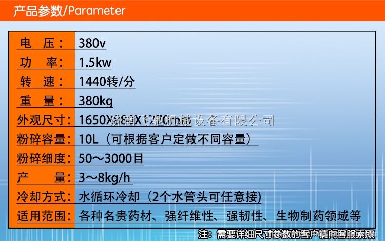 10、温度可控:通过配置可进行高温、常温、低温或超低温的微粉碎,可以保持物料的原有理化性质和活性成份。给磨筒外壁的夹套通入冷水。通过调节冷却水的温度和流量可控制粉碎温度。低温粉碎,冷冻系统最低温度可达零下35℃(高档低温配置)。