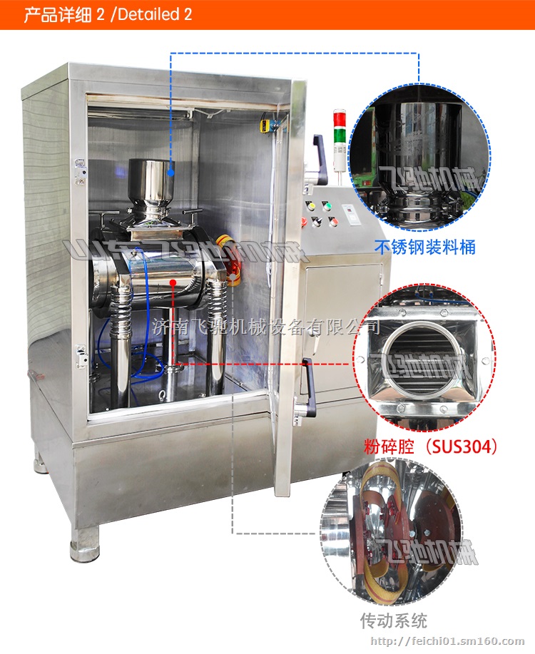 2、洁净卫生:内外面平滑、一机多用、减少污染、减轻洗净作业负担;粉碎过程全密闭无粉尘溢出,充分改善作业环境,有效成份不损失。