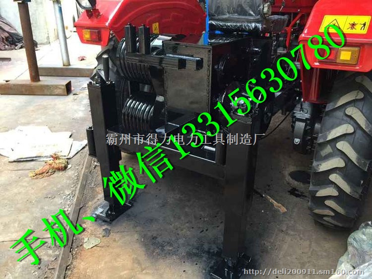 拖拉机绞磨由拖拉机改制,用于牵引收放线或起吊重物,拖拉机牵引机自备行走部分可以配车箱以方便运输。两侧配有三只卷筒,一边是“V”型可以牵引普通钢丝绳或锦纶绳,另一边是带槽的大直径卷筒可以牵引无扭钢丝绳。拖拉机牵引机可以在座位上操作,也可以在地面操作;拖拉机牵引机可配收排线装置牵引箱带有离合拔叉,行驶时拖拉机和牵引箱分离;牵引缠绕钢丝时更为灵活;带有辅助支撑,牵引时轮胎压力减小,整机稳定性好;刹车性能优越,能起到点动,可带测力装置钻孔机,打桩机,水冷柴油机绞磨,防扭钢丝绳,导线卡线器,人字铝抱杆,铝合金手扳葫芦,手扶拖拉机绞磨,铝合金内悬浮抱杆,液压角钢冲孔机,铜排平弯机,液压弯管机,电力梅花扳手,电线杆运杆车,电缆切割锯