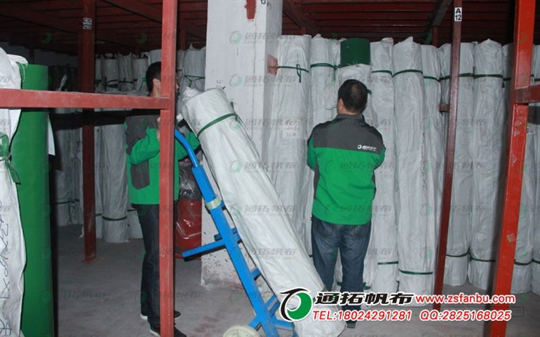 防水帆布的生产工艺有两种,一种是卧式机机械生产,就是那种重型大圆柱,把苫布放入材料之后再那出来放在皮拉带上,通过重型大圆柱底部压制压平,再拉上烘干机烘干,然后切边、分圈、包装。一种是立式机机械生产,将布匹拉直放入原料箱拉出,苫布上所粘胶质类材料是纯度高的PVC材料,然后两边一直都拉直过机用刀刮,用刀刮之后过烘干机烘干,切边、分圈、包装。
