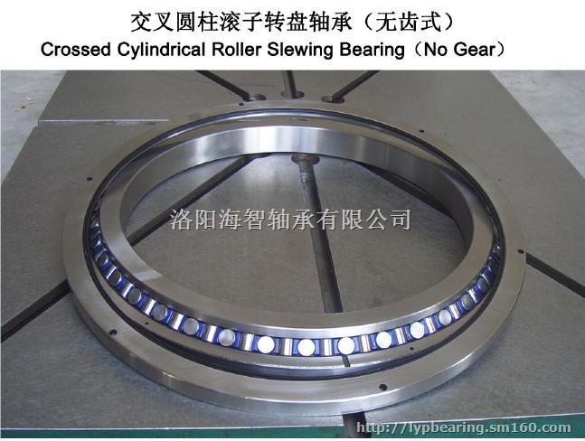 洛阳精密轴承集团生产供应内径在200mm--5000mm的外齿式,内齿式,无齿式交叉圆柱滚子转盘轴承。该类轴承在内圈和外圈之间正交配置滚子,是一款紧凑型结构的轴承。滚动面为线接触,因此轴承负荷引起的弹性变位极小,且能同时承载径向负荷、轴向负荷及力矩等复杂的联合负荷。此类轴承被广泛用于需要小型高刚性和高旋转精度的产业用机器人、机床及医疗设备等的旋转部位。