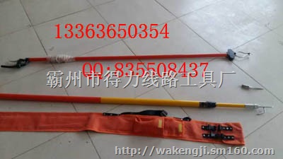 异物杆是用来清除挂在供电线路上的异物(如树枝塑料袋风筝等)的专用工具,其功能可以挑、钩、锯、打。该工具用环氧树脂玻璃纤维管材料为杆身,绝缘性能好。重量轻,可以伸缩,携带方便,杆头部刀据和钩尖用不锈钢材料制作,不但防锈,而且锋利。更换方便。伸缩机构是定位销锁紧,伸长时拉出,当拉到看见刻线时停住,而后左右转动,转到一定角度,定位销会自动弹出,从而定位锁紧,当收缩时用手指按下定位销同时往里推内管即可缩短。