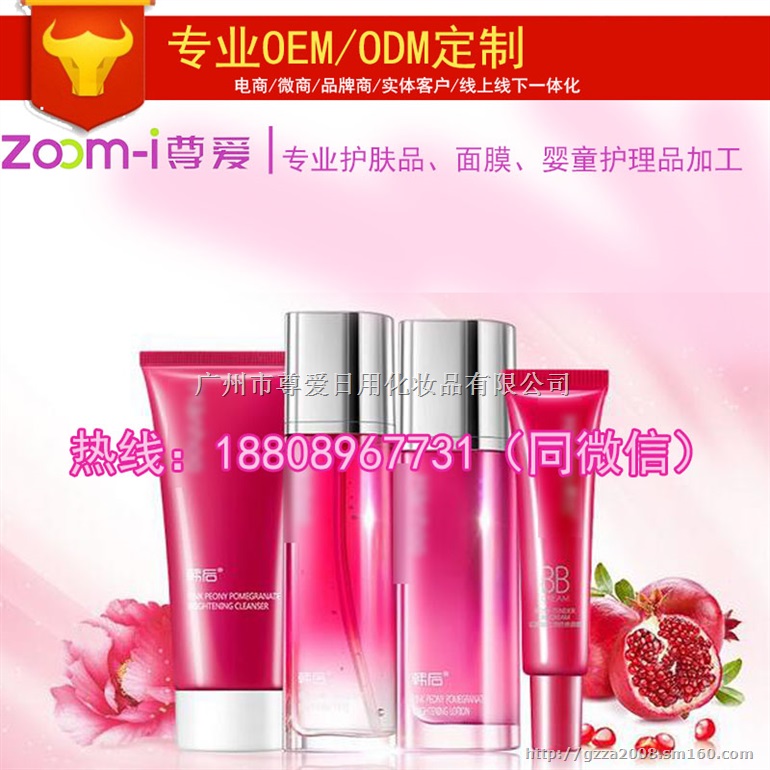专业提供电商、微商渠道化妆品代加工,产品涵盖洁肤、护肤、乳液、精华液、面膜、面霜、爽肤水、防晒、粉底液、精华液、隔离霜、祛痘产品、祛黑头、修复、沐浴、体护、香体、手护、足护等品类,欢迎各界人士来我公司咨询、洽谈。