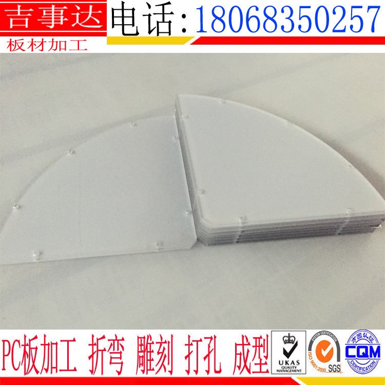 吉事达人深切意识到对板材深加工市场的开发和应用的重要性,涉足并开发车辆PC防护罩,PC防爆护罩,机床PC防护罩,PC玻璃防护罩,透明塑料防护罩,透明玻璃防护罩,PC玻璃面板,PC玻璃加工,PC板加工,透明绝缘PC玻璃护罩,PC玻璃挡板,PC玻璃护板,PC玻璃视窗,PC板折弯,PC板打孔,PC玻璃板,PC玻璃来图加工,PC挡风玻璃,PC玻璃门,PC玻璃观察孔。印刷、电子电器、汽车制造、航天制造等相关市场,有效填补了国内高精尖领域对PC工程塑料的需求空白。吉事达人一直秉承“领先品质、卓越服务”的宗旨,并以雄厚的技术力量、高素质的专业人才和一流高效的管理,树立了良好的企业形象,相信PC板加工这个后起之秀一定会在PC界留下灿烂的一笔。PC板非标加工 PC板加工 PC板加工制品 PC板加工防护罩
