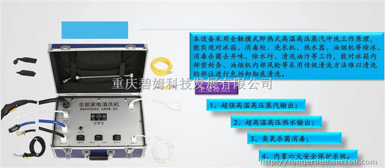 本设备为清洗空调、油烟机、冰箱、洗衣机、热水器、饮水机的多功能专用清洗设备,操作简单、组装简便、功能丰富。