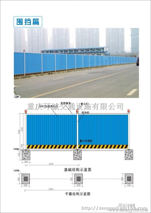 | 公司从事交通设施安全标识标牌、各种围挡专业生产多年,现拥有国际先进水平的生产线,检测设备及技术,生产各类市政用PVC塑料施工围挡、围墙等。产品可广泛应用于市政房建设施工及各类道路施工。 |
