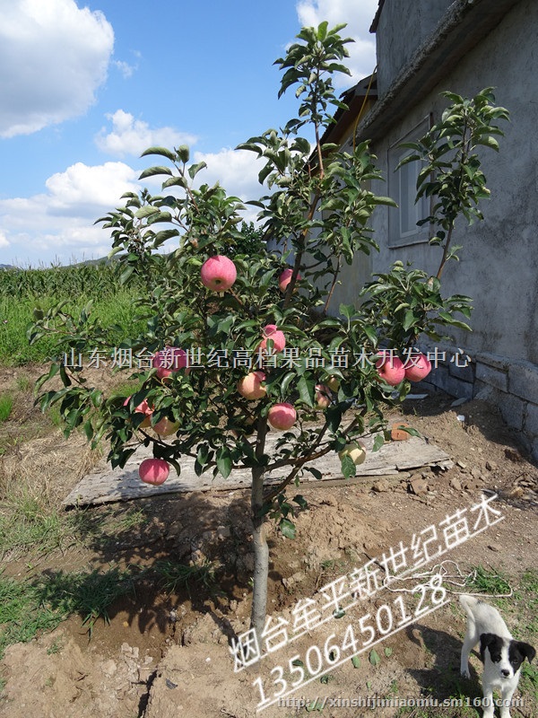 山东省烟台市牟平区新世纪苗木开发中心现面向全国客户批发2公分苹果树,3-10公分结果苹果树。当年结果,有短枝,长枝,全红系列。根系发达,树形好看,是您建园首选。