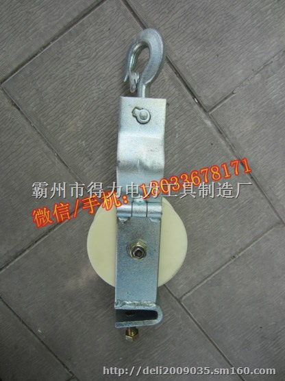 放线滑轮:分为地缆滑轮,电缆滑轮、朝天滑轮、尼龙滑轮、电缆导线放线滑轮,大直径放线滑车、做挂两用放线滑车、地线放线滑车、起重滑轮。主要用于铺放电缆导线时起到保护的作用,省时省力,地缆滑车的用途:用于电缆延放改变方向处 , 保护电缆不受摩擦。