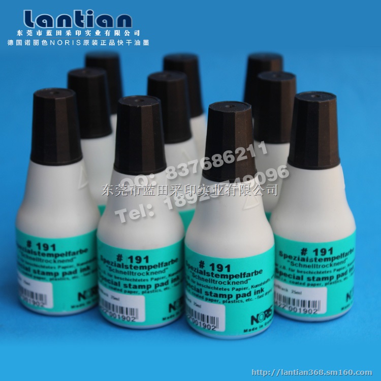 ◆诺丽色NORIS#191快干万能不灭印油, PCB线路板印油,金属油墨 。 包装 :塑胶瓶装,型号 :#191,规格:25ML,颜色:黑色、红色、蓝色、绿色、紫色、白色、黄色、桔黄色。 ◆诺丽色#191现代型印台油墨,几乎适应于任何非多孔渗水的表面。如:金属,塑料(聚乙烯、乙烯、乙烯基、聚丙烯、聚苯乙烯泡沫塑料、硬质PVC、ABS塑胶片、天然橡胶)、玻璃纸、铜版纸、光泽纸、陶瓷、皮革、棉布、木材、PCB线路板等任何非多孔渗水的表面。 ◆这种印油在这些材料上使用、速干时间快,印迹清晰、着附力强、不脱落、永不褪色、效果极佳。本产品环境对应RoSH指令合格。