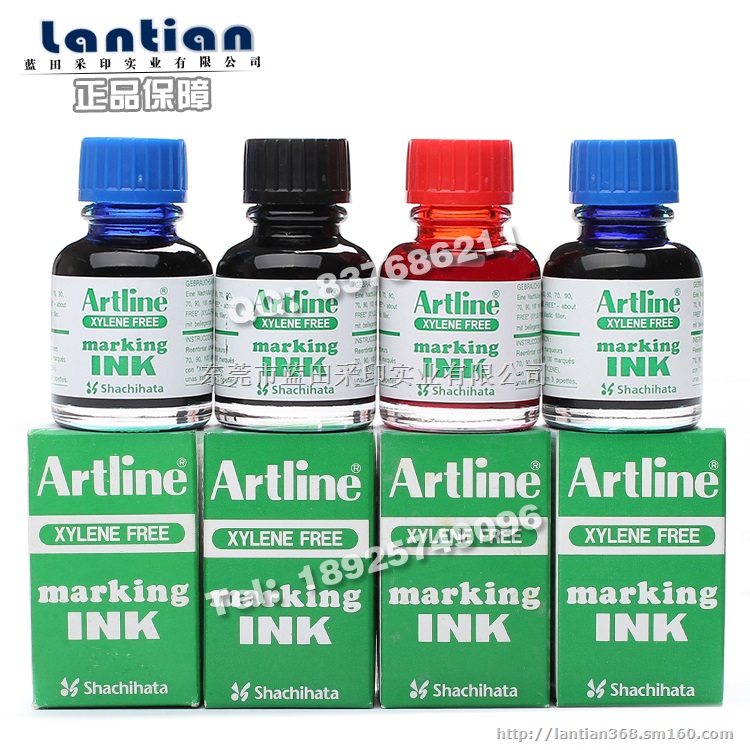 日本Shachihata旗牌Artline雅丽ESK-20、ESK-50箱头笔墨水。油性箱头笔添加墨水:应用于EK-30、EK-50、EK-70、EK-90、EK-100、EK-1。 EK-130、EK-107R、EK-109R、EK-700、EK-710、EK-36T等型号。◆ESK-20 20CC/ML、 ESK-3 330CC/ML 颜色12种:土黄、黑、蓝、红、绿、棕、橙、紫、黄、粉红、浅蓝、浅绿。