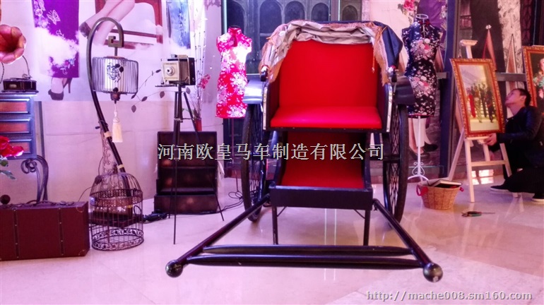 二、黄包车做工工艺:车身采用防氧化处理,车漆为亮光金属漆或亚光金属漆,坐垫为海棉加皮革,车棚可折叠.