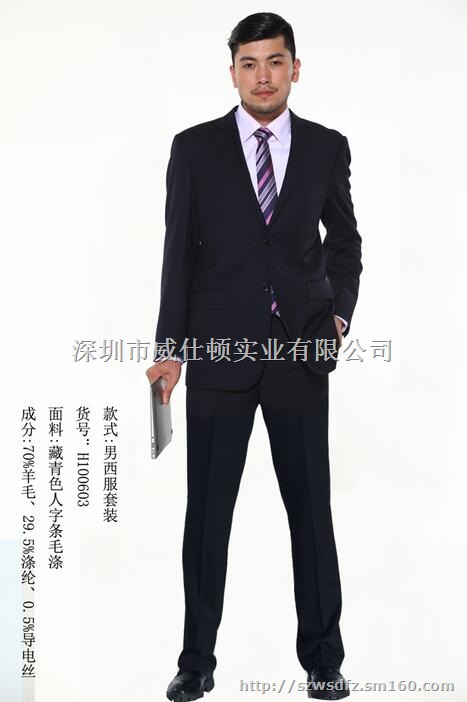 <威仕顿>成立于2003年,注册资金9000万,是集职业装的研发、设计、生产、销售、团体定制为一体的专业化职业装公司。公司拥有一流的职业装生产流水线,具有年产西服10万套,衬衫12万件,商超装15万套,工程装20万套的能力。