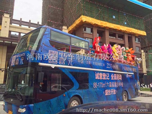 现在双层巡游大巴慢慢的流行起来了,有人结婚使用.房地产使用。但是很多地方都是在房地产使用的,因为双层巴士车身尺寸比较大,巡游起来效果比较好给人的感觉比较震撼,想象下一个尺寸:长11.5米,宽2.5米,高4.25米的巡游大巴经过你面前,你是不是感觉眼前一亮。然后就看到车上的车身广告了,这样一下子就能达到宣传效果了。